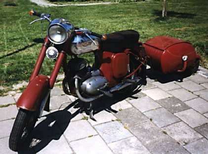 De Pav-aanhanger was er toen nog niet bij. Die is een paar jaar later uit Praag gehaald achter in een Acadyane. Een mooie reis en een avontuur op zich. Ik heb met de Jawa altijd graag langere afstanden gereden, ook al is hij niet snel. (Zijn top ligt als hij helemaal in vorm is rond de honderd) Ik ben er bijvoorbeeld drie keer mee naar Tsjechie geweest, een keer naar Engeland, een keer naar Denemarken en een keer heel Noordfrankrijk door. Nooit veel problemen onderweg. Een trouw beestje... Ik ben heel blij dat ik mijn kleine brave Jawaatje nog heb en ik doe hem het liefst nooit meer weg!Als ik op de Jawa zit heb ik vaak alle tijd om rustig over allerlei dingen na te denken. Ik vind het dan vaak leuk om teksten te bedenken die je kunt zingen op bestaande melodieeen. Die teksten gaan altijd over motorrijden en vaak specifiek over Jawa's. Je kunt een aantal ervan hier vinden.